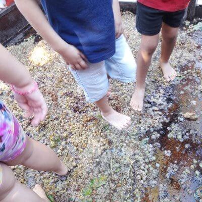 - Πάτημα σταφυλιών με τα πόδια