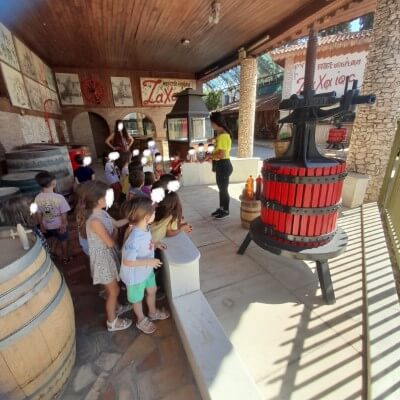 Μέσα από το πρόγραμμα γνώρισαν το αμπέλι και τα είδη των σταφυλιών, έμαθαν για τον τρύγο, γνώρισαν τα κυριότερα παράγωγα του σταφυλιού, τον μούστο, το πετιμέζι, το κρασί και πως χρησιμοποιούνται στην παραδοσιακή μαγειρική (συνταγές για μουσταλευριά και μουστοκούλουρα) , ξεναγήθηκαν στις εγκαταστάσεις του σύγχρονου οινοποιείου, είδαν από κοντά εργαλεία μιας άλλης εποχής (στροφυλιές, ξύλινα πατητήρια)