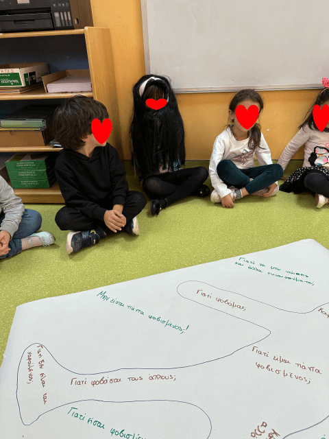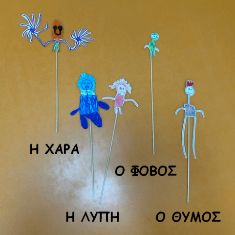 Στα πλαίσια της Θεατρικής Αγωγής τα παιδιά ταξίδεψαν στον κόσμο των συναισθημάτων. Γνώρισαν το κάθε ένα ξεχωριστά, μίλησαν μαζί του και στη συνέχεια έγιναν εκείνα το συναίσθημα που μόλις τους είχε συστηθεί. Κατ’ επέκταση ζωγράφισαν τα συναισθήματα όπως τα ίδια τα φαντάζονταν για να τα αξιοποιήσουν στο τέλος ως κούκλες στις παραστάσεις κουκλοθέατρου που τα ίδια δημιούργησαν. Ακόμα, ανακάλυψαν τις έννοιες της διαφορετικότητας, της συμπερίληψης και της αποδοχής κατανοώντας πως ακόμα και αν κάποιος νιώθει ή είναι διαφορετικός από τους άλλους οφείλουμε να τον κατανοήσουμε και να τον αποδεχτούμε, όπως οφείλει να κάνει και εκείνος με την δίκη μας διαφορετικότητα. Σε όλο αυτό το ταξίδι είχαμε οδηγό διάφορες θεατρικές τεχνικές όπως είναι ο αυτοσχεδιασμός, ο δάσκαλος σε ρόλο, ο διάδρομος της συνείδησης, ο ρόλος στον τοίχο, κ.α.