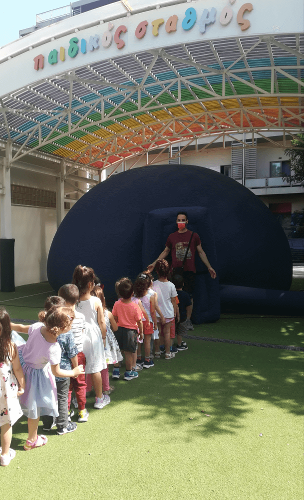 Το Μίνι κινητό Πλανητάριο είναι ένας ειδικός θόλος, μία φορητή φουσκωτή «αίθουσα» µε θολωτή οροφή πάνω στην οποία προβάλλονται ταινίες εκπαιδευτικού, επιστημονικού και ψυχαγωγικού περιεχομένου. Οι μικροί μαθητές καθισμένοι κάτω απ’ τον θολωτό τρούλο, παρακολούθησαν μία ταινία υψηλής ανάλυσης που αφορούσε την εξερεύνηση του διαστήματος με τίτλο «Ο τυφλοπόντικας». Οι εικόνες ήταν τόσο ρεαλιστικές, που η εμπειρία τους έγινε κομμάτι της πιο ενδιαφέρουσας εκπαιδευτικής τους ανάμνησης.