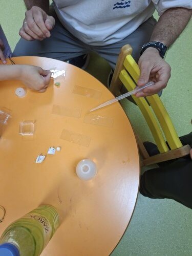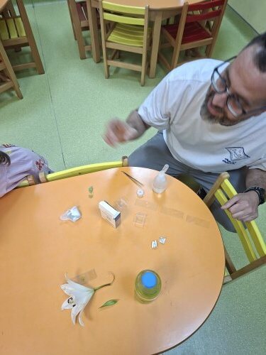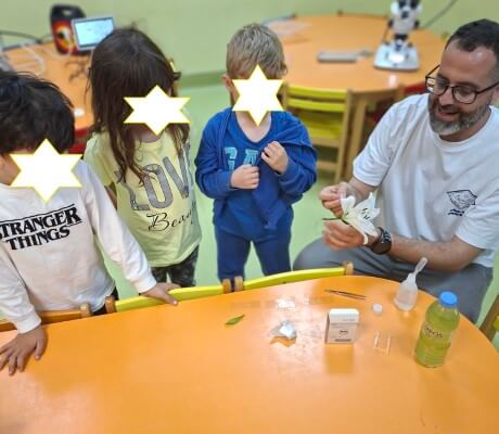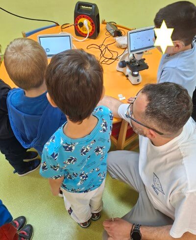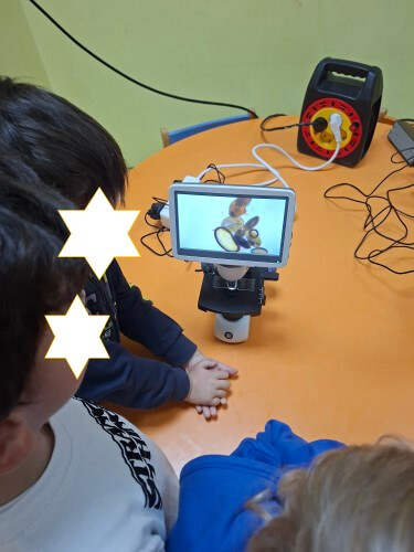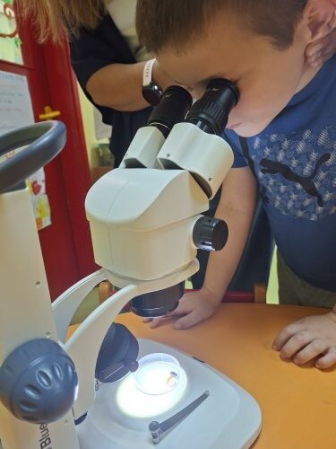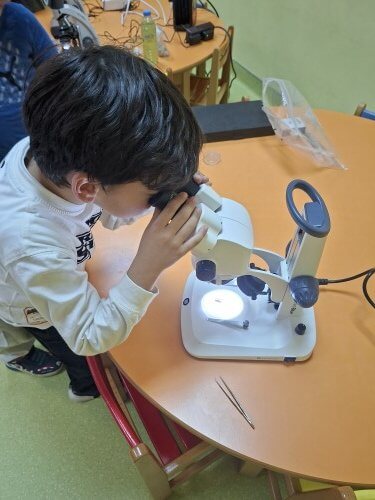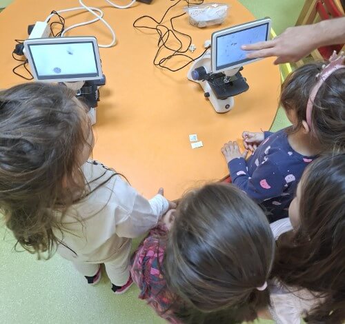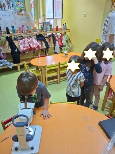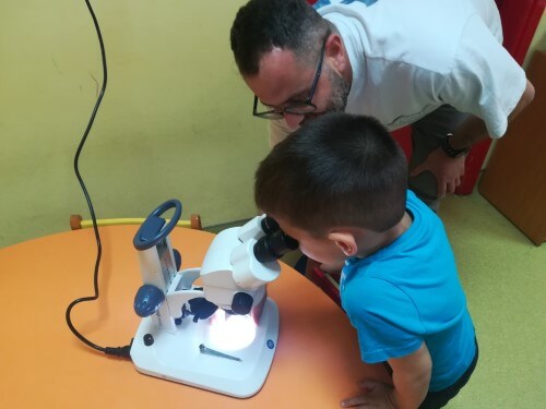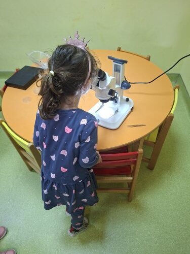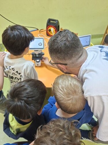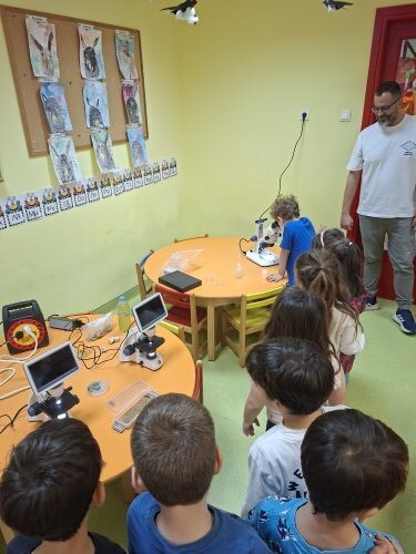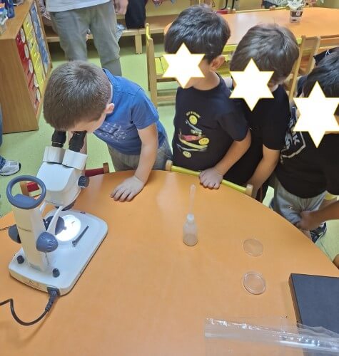 Με χαρά οι μαθητές του νηπιαγωγείου υποδέχτηκαν τον κ. Ι. Δ. Αδαμάκη (Αναπληρωτή Καθηγητή στον Τομέα Βοτανικής στο Τμήμα Βιολογίας ΕΚΠΑ και πατέρα του μαθητή μας Στέφανου) στο χώρο του σχολείου μας , καθώς τους δόθηκε η ευκαιρία με την βοήθεια των δύο οπτικών μικροσκοπίων και ενός στερεομικροσκόπιου να κάνουν τις πρώτες παρατηρήσεις τους και να έρθουν σε επαφή με τον μικρόκοσμο της φύσης.