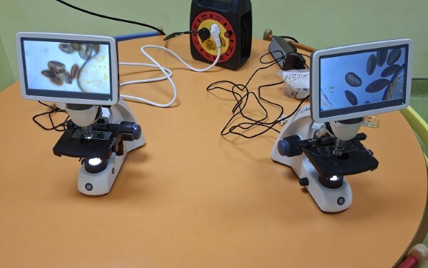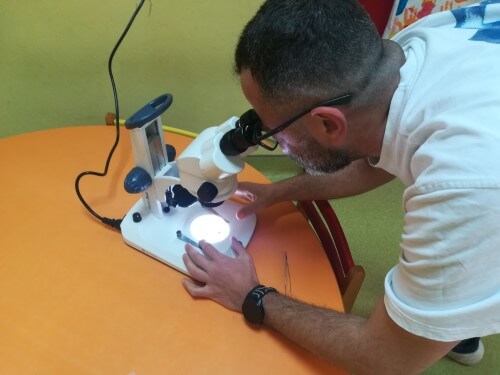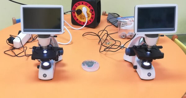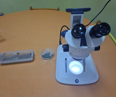 Τα οπτικά μικροσκόπια χρησιμοποιήθηκαν για την παρατήρηση διαφανών ή πολύ μικρών δειγμάτων όπως φύλλα, γύρη και νερό από λιμνούλα και το στερεομικροσκόπιο, χρησιμοποιήθηκε για την παρατήρηση του εντόμου που τρέφεται με ξύλο.