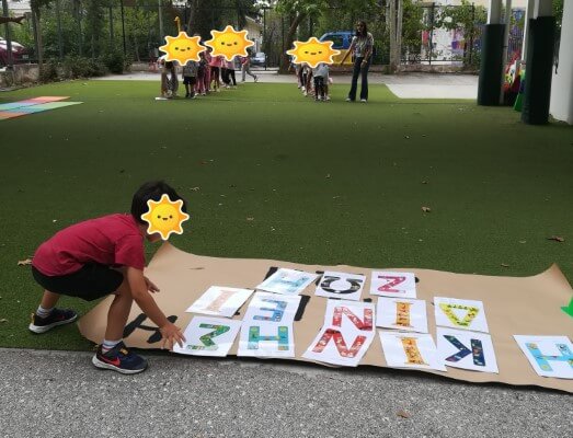- Μαθαίνουμε την ευρωπαϊκή ημέρα και στα αγγλικά, Ζωγραφίζουμε τα γράμματα που θα σχηματίσουν το σύνθημα μας, «Η Κίνηση δίνει Ζωή».